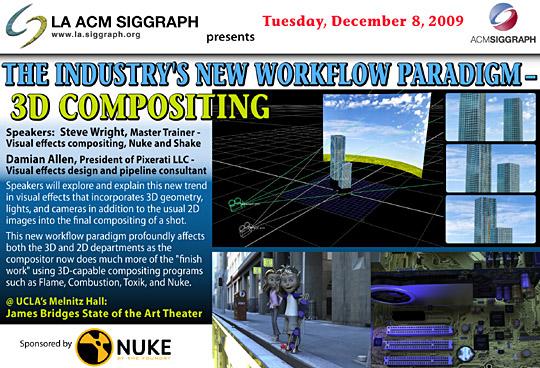 A panel discusses the evolving workflows having a profound effect on the work of all 3D animators as well as 2D departments who now do the "finish work" like never before using Flame, Combustion, Toxik, and Nuke.