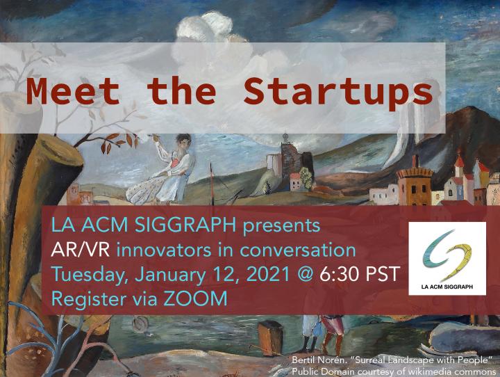 Investment in VR and AR Startups in 2019 was over $4.1 billion with the majority of that investment occurring in the US and China. As VR/AR companies strive to increase market share they all share a common goal: Increase the size of the VR/AR market. Hear from the leaders of five XR Startups at LA ACM SIGGRAPH's January event, Meet the Startups. This event requires registration with Zoom.