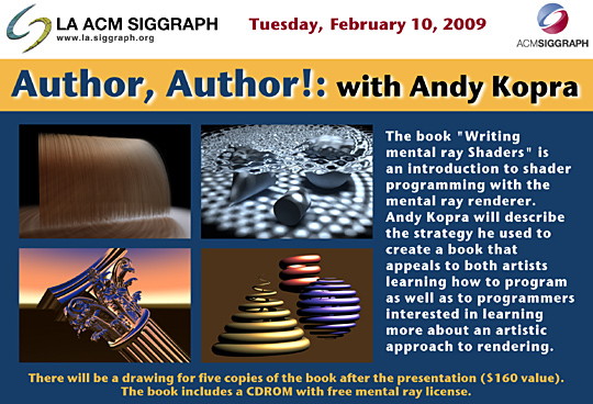 All LA ACM SIGGRAPH will be admitted free of charge. Non-members of LA ACM SIGGRAPH are admitted for $20.00. New LA ACM SIGGRAPH members who sign up on-site, and pay the $40 annual membership fee (checks or cash only), do not have to pay the $20 admission fee.