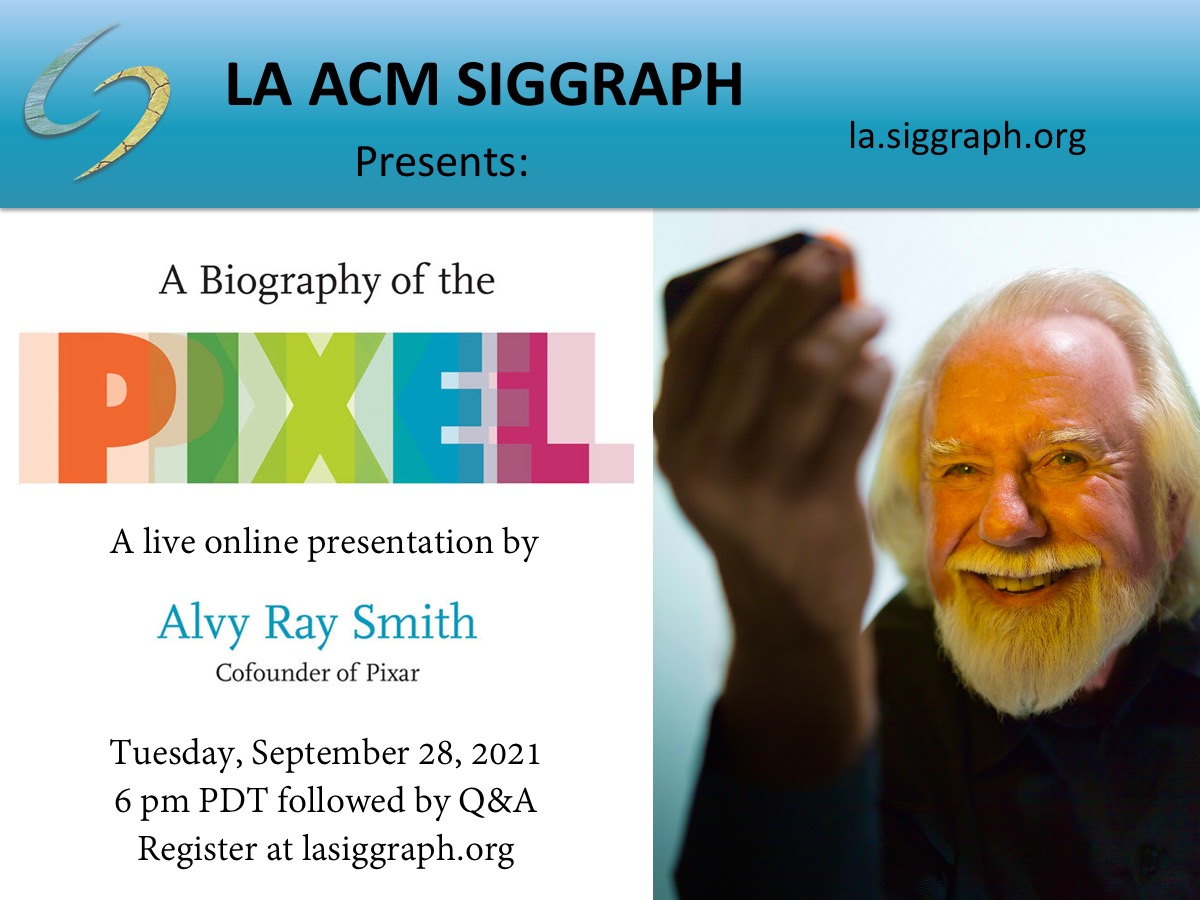 Many of the computer graphics innovations that we take for granted today can be traced back to a handful of pioneers and Dr. Alvy Ray Smith, cofounder of Pixar (among many other titles), is one of them. Alvy will take us on quick tour through computer graphics from first pixels to modern times, sharing fun and sometimes surprising stories, historic images, some lesser known facts and thought-provoking musings. Alvy’s talk will be moderated by Chapter Past Chair and PGA New Media Council board delegate Ed Lantz.