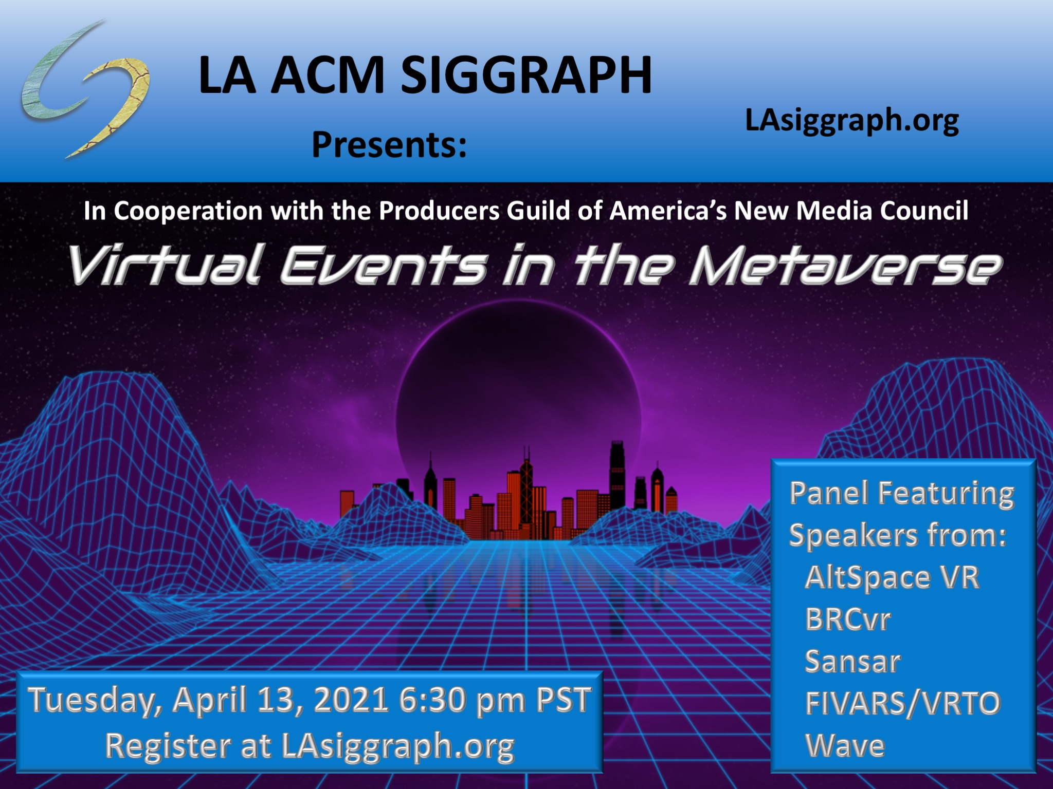 This event is open and free to LA ACM SIGGRAPH Chapter and PGA members IF you register by 24 March. You must register through Zoom to get access to this Webinar. We always appreciate a donation or Chapter Membership to help cover our expenses. Public registration is available and costs $10. Register and pay with Zoom.