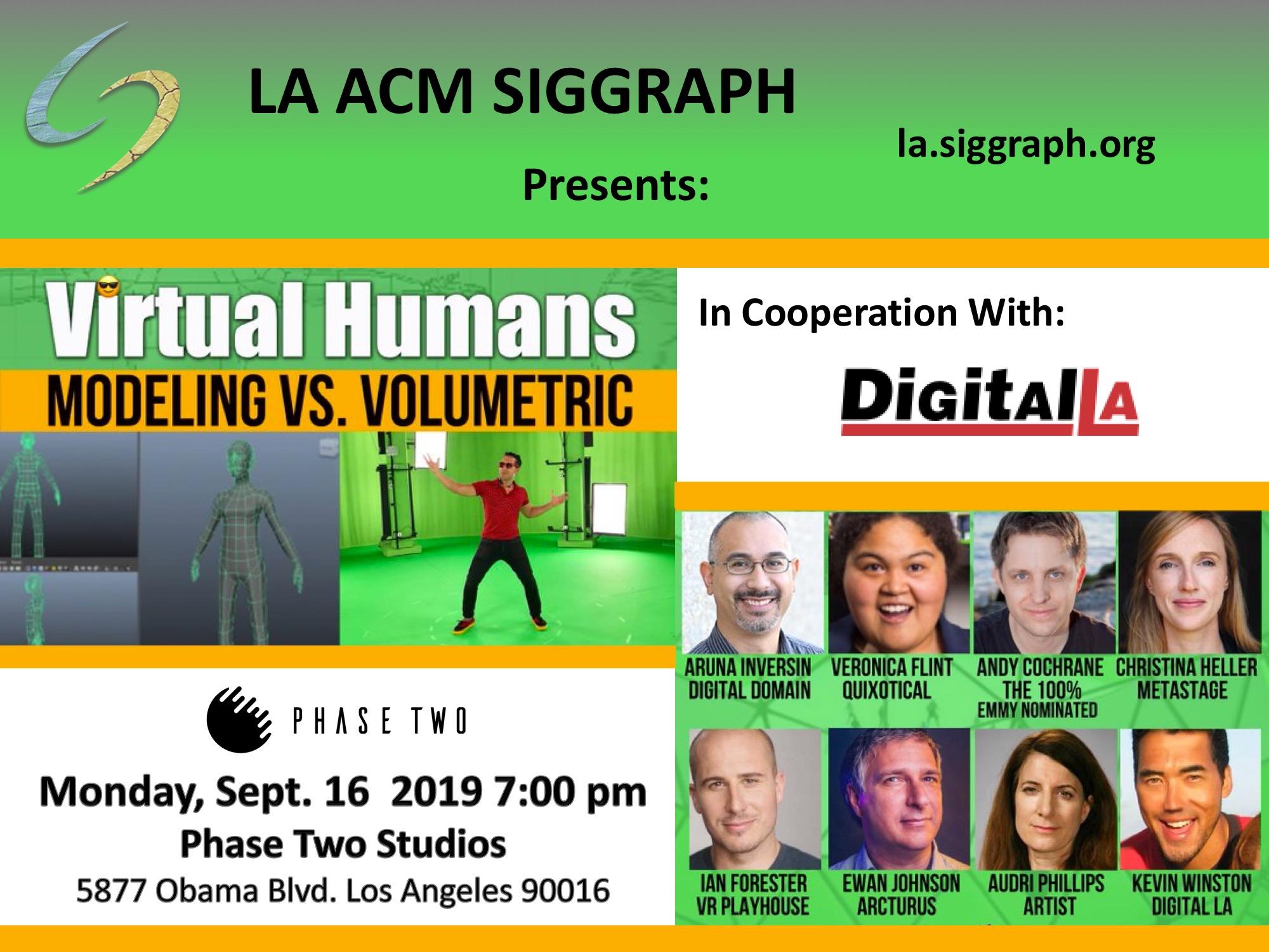Kevin Winston, Digital LA; Venue sponsor Phase Two, Gregg Katano; Ed Lantz, Ed Arroyo, Tim Everingham, Leonard Daly, Sheri Ki Sun Burnham, Chapter Executive Council, and all of the volunteers.