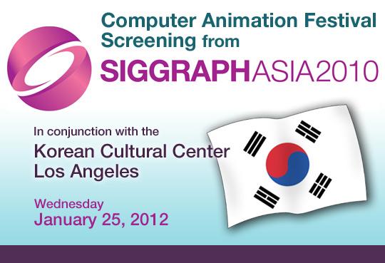 In conjunction with the Korean Cultural Center, LA ACM SIGGRAPH brings you a screening of SIGGRAPH Asia 2010's Computer Animation Festival from Seoul, Korea.