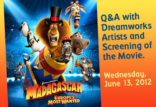 Q&A with the directors from Madagascar 3 followed by a screening of the movie. You MUST RSVP to attend this event.